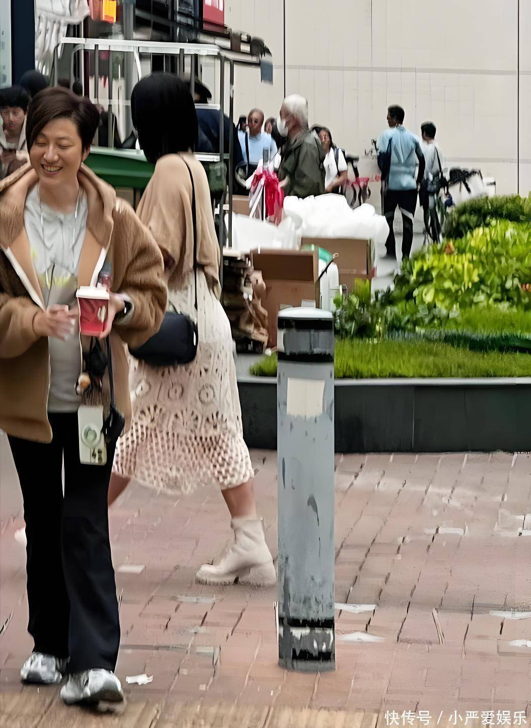她身着驼色棉服,搭配简约的黑色紧身裤与运动鞋,模样十分闲适。不过,她的身材比身旁育个孩子的蔡少芬胖很多。她身材极为丰腴,背也厚实。因没好好管理身材,如今泯然众人矣。